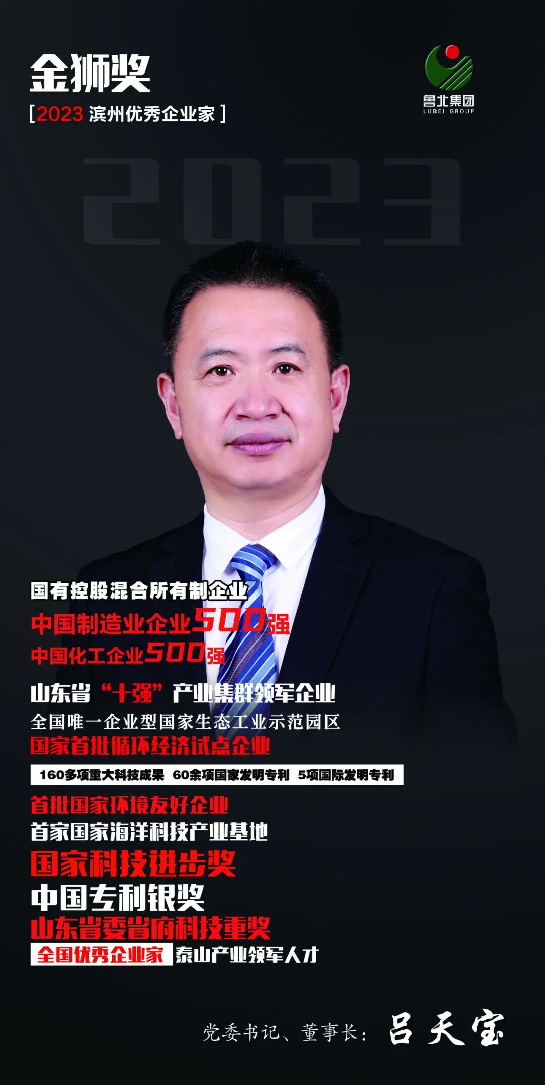 吕天宝,鲁北集团党委书记、董事长,荣获国家科技进步二等奖、中国专利奖银奖、全国优秀企业家等荣誉称号。他致力于发展循环经济产业、开发资源综合利用技术,化解了工业副产石膏、废硫酸处理这一制约工业企业发展的世界级难题,将鲁北集团打造成全国首批循环经济试点单位,被誉为国内“利废新材料领军人物”。