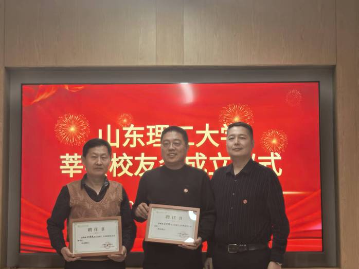崔兆强宣读校友总会《关于同意山东理工大学莘县校友会成立的批复》,批准莘县校友会成立,聘任王世朋担任会长,张曙光担任秘书长。