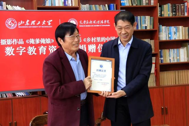 3月26日下午,我院在2号教学楼208会议室举行数字教育资源库捐赠仪式。我院杰出校友、著名摄影家、纪录片导演焦波向母校捐赠《俺爹俺娘》摄影作品及《乡村里的中国》纪录电影数字教育资源库。学校党委常委、副校长郭庆兵,合作发展处处长李涛出席仪式,我院党委书记王建兴主持仪式,学院相关负责人及学生代表参加。