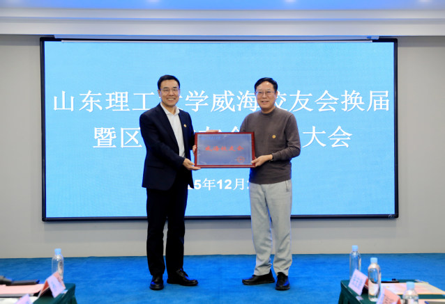 崔焕勇为威海校友会授牌,为会长、秘书长颁发聘书。